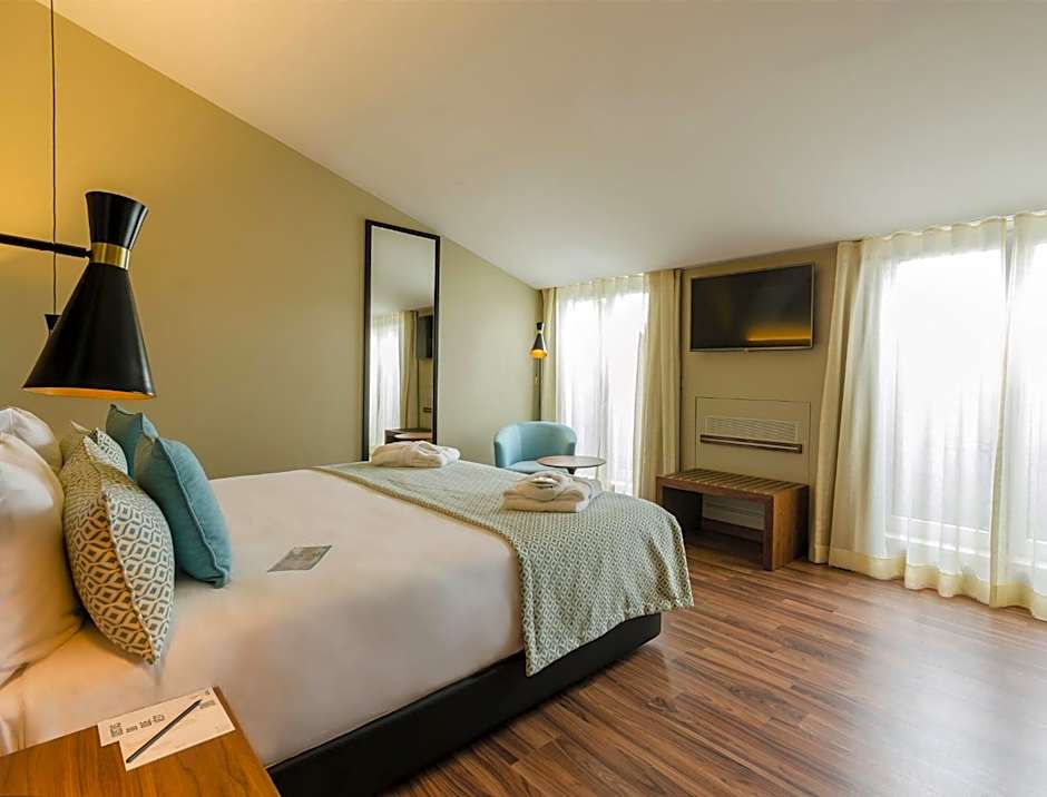 The hotel’s elegant and modern superior double rooms all come with a free WiFi and a flat-screen TV. The air-conditioned units also feature a private bathroom and most also have a small seating area.