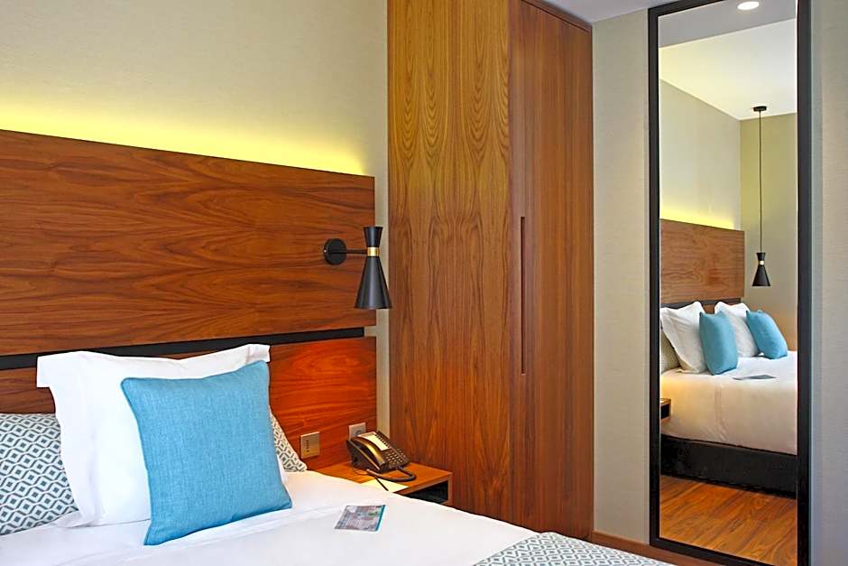 The hotel’s elegant and modern corner double rooms all come with a free WiFi and a flat-screen TV. The air-conditioned units also feature a private bathroom and most also have a small seating area.